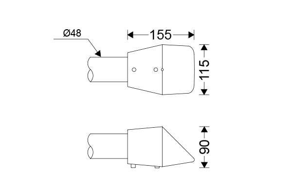 Horizontal boom entry bracket for mounting luminaires on booms with 5-cm outer diameter